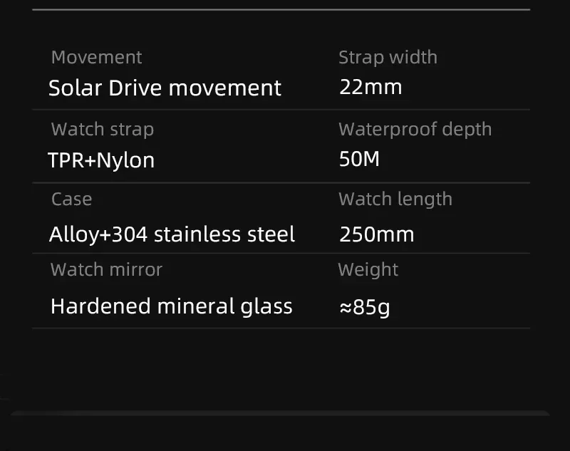 TPR + NYLON STRAP: Flexível, resistente ao desgaste, ajuste confortável no pulso.