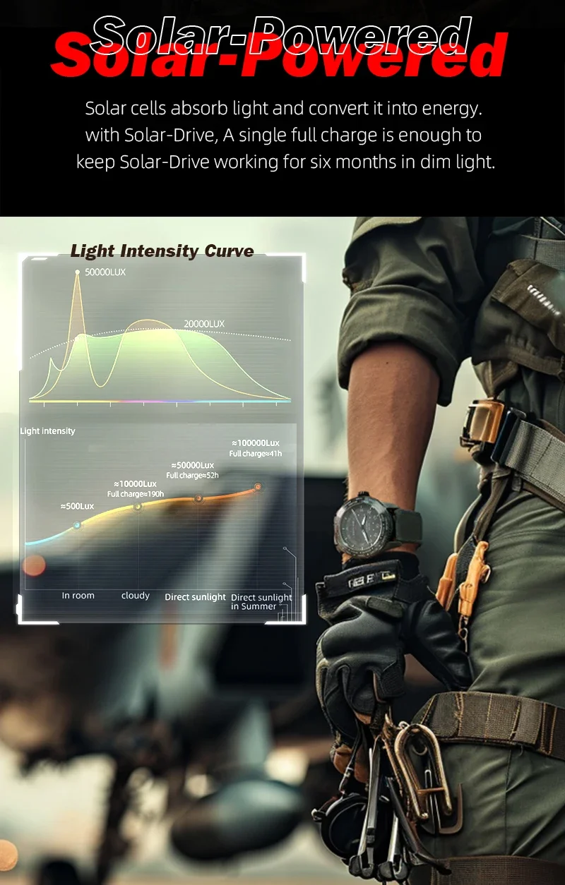 TECNOLOGIA SOLOR PODERADA: Bateria de carga completa 180 dias; ± 30Sec/Month Tempo Veracidade